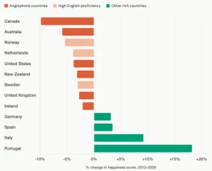 This is from a New York Times article this morning showing why people are progressively unhappy despite being better off financially than ever before. For my Canadian clients: I'm sorry.